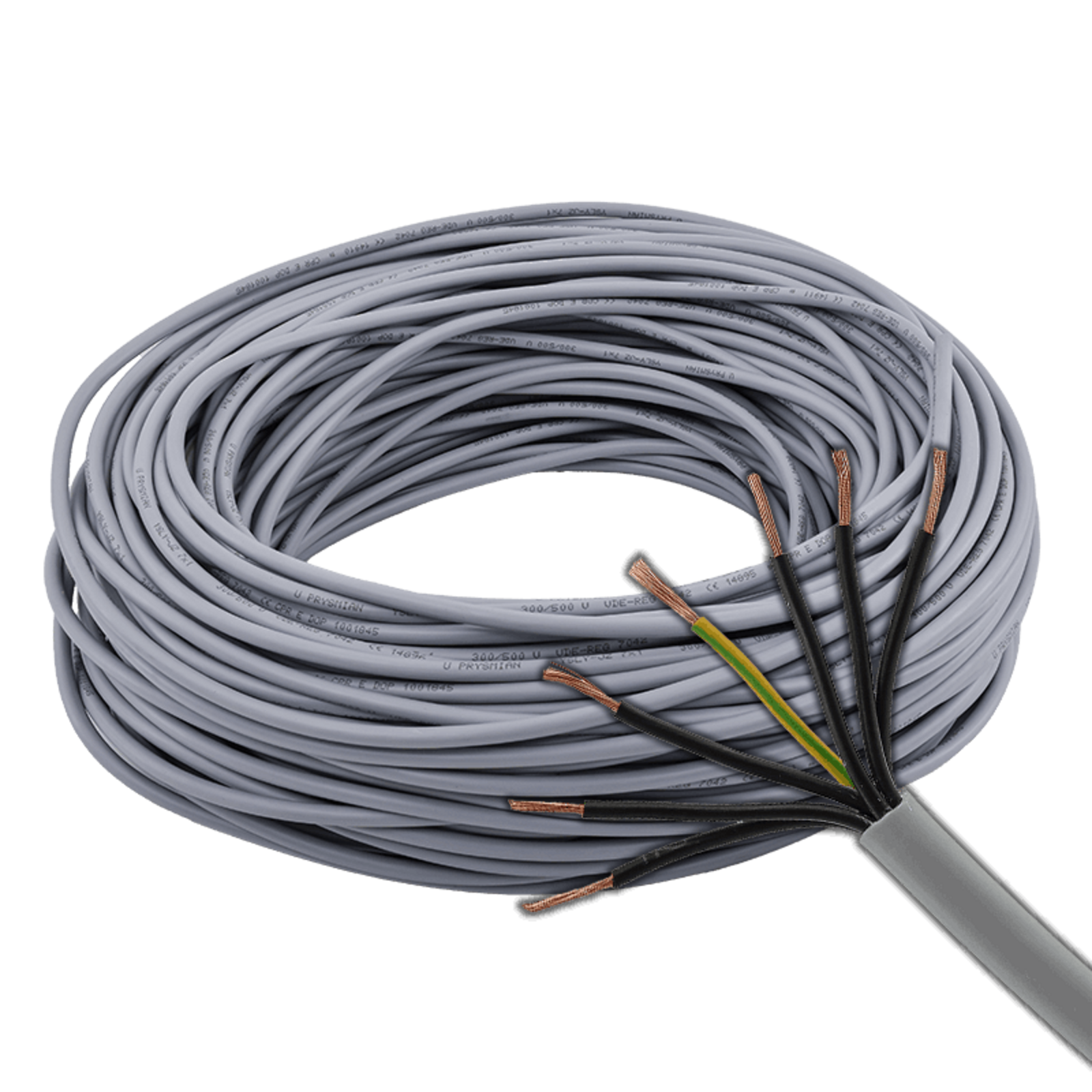 Rugalmas, kerek keresztmetszetű, szürke PVC-köpenyű YSLY jelkábel, amely több, egymástól külön szigetelt, finomsodratú (class 5) csupasz réz eret foglal magába. A lángterjedést gátló PVC érszigetelést robusztus, sima külső köpeny óvja (CPR-osztály Eca, EN 60332-1-2), ezért megbízható választás érzékelők, relék, segédáramköri egységek és más ipari vezérlőberendezések összeköttetéséhez.